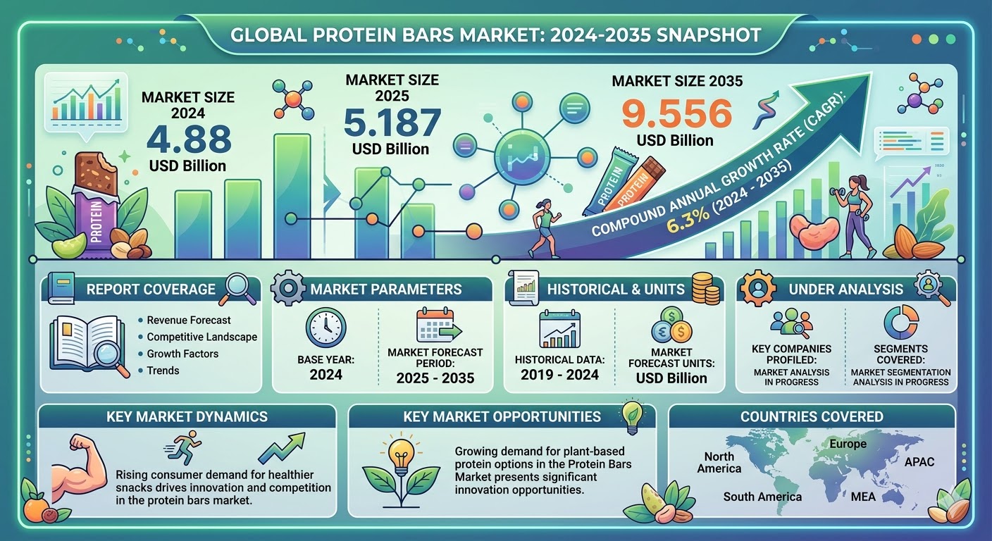 → A 6.3% CAGR places the Protein Bars Market among the fastest growing segments in the global packaged food industry.