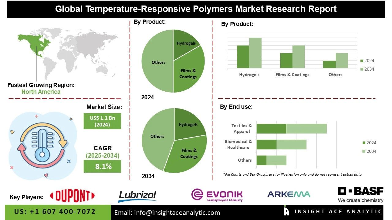 InsightAce Analytic Pvt. Ltd. announces the release of a market assessment report on the “Global Temperature-Responsive Polymers Market Size, Share & Trends Analysis Report, By Product (Hydrogels, Films & Coatings, Fibers & Textiles, Additives & Blends, and Shape-Memory Components), By End Use (Biomedical & Healthcare, Textiles & Apparel, Automotive & Aerospace, Electronics & Consumer Goods, and Packaging & Food),-Market Outlook And Industry Analysis 2034″